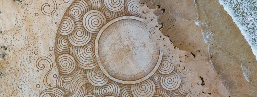 FineArt Prints von meine freien Arbeiten am Strand, mit Blättern, im Schnee, es ist so viel möglich. Orte verändern mit dem was wir finden. Teilweise Flächen über 100m und mehr, die dann für kurze Zeit zur Leinwand werden. Als Foto festgehalten, oder als Event selbst mitgemacht.